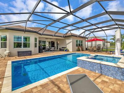 Experience refined luxury living with the Bianca Model at Valencia Cay in Riverland. This elegant pool home, situated on a private lot, features 2 bedrooms +den/3rd bedroom, a family room, a spacious living area, a two-car garage, and a dedicated golf cart garage to enhance ease of transportation within the community. Thoughtfully designed for modern comfort and sophistication, this residence offers open-concept living, high-end finishes, and generous interiors ideal for an active, upscale lifestyle. Highlights include an expansive great room tailored for entertaining, a gourmet kitchen equipped with premium cabinetry and stainless-steel appliances, and a luxurious master suite featuring walk-in closets and a spa-inspired bathroom, with a large shower and separate