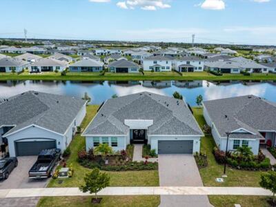 Welcome to this stunning 4 bedroom, 3 bath, 2-car garage lakefront home in the heart of Tradition! Built in 2023, this move-in ready residence offers a modern open-concept design with tile flooring in main living areas, plush carpet in bedrooms, and stainless steel appliances. Primary bathroom has dual sinks and walk in shower and there is an ensuite bedroom. Enjoy breathtaking southeast lake views and gorgeous sunrise from your backyard. The gated community provides amenities including a pool, kiddie pools, lawn care, irrigation, cable, internet, HBO, and alarm monitoring--all included in the HOA. Additional features include an EV charger in the garage and a prime location close to shopping, dining, and easy access to I-95. Why wait to build when you can move right in?