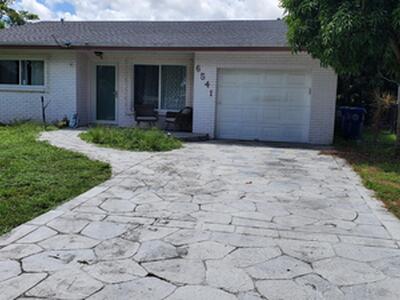 This hidden gem on a lake is ready for move-in. 2/2 or 3/2, 3rd room in the back with its own sitting area that can be used as 3rd bedroom, office or efficiency. Fishing deck with mango trees, wired fence. Recently renovated, roof is 4 years old, brand new AC with entire new duct throughout the house, impact windows and doors, new appliances, knockdown ceiling and walls, new electrical panel and water heater. Open concept, brand new kitchen with quartz countertop, gray shaker cabinets. No HOA, room for pool.