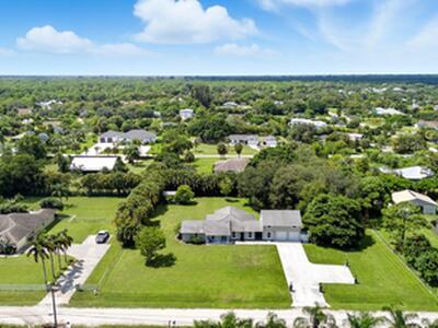 Do not miss this rare opportunity in Palm Beach Country Estates featuring the perfect combination of a spacious single-family home and a detached in-law suite/apartment. The main home offers 3 bedrooms and 3 bathrooms, while the detached guest house includes 1 bedroom, 1 bathroom, a full kitchen, and living area--ideal for extended family, guests, or as an income-producing rental to help cover your mortgage. All of this sits on 1.16 acres with plenty of privacy and no HOA, giving you the freedom to bring your boat, RV, toys, or even farm animals.The main residence is one story and showcases travertine flooring in the living areas, laminate flooring in the bedrooms, high ceilings, and an abundance of natural light throughout. The spacious kitchen features granite countertops,