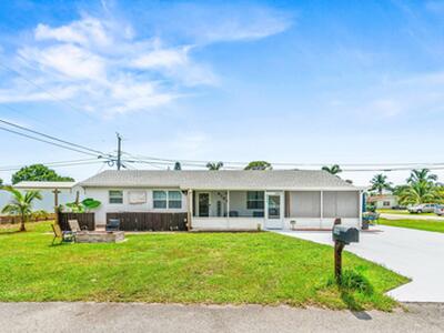 Rare 4 bedroom, 2 bath CBS home in desirable West Lake Worth location! Walk to the NEW Garcia High School. Completely remodeled home w/ NEW kitchen w/ white shaker-style cabinetry, granite counters and newer appliances. Floors throughout are low maintenance vinyl plank flooring - no carpet! Split bedroom design is perfect for privacy. You will love relaxing on your screened-in front porch. Large corner lot! NEW Roof 2023 | NEW AC 2023 | NEW Impact Windows | NEW bathrooms w/ porcelain tile, shaker-style vanities and granite counters. 2021 electrical upgrades. NEW shed will stay on property. Plenty of room for parking! Freshly painted - move right in. Enjoy freedom w/ no HOA - trucks, pets, toys...are welcome!