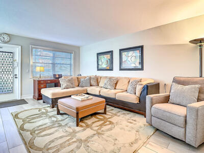 Immaculately clean and beautifully updated 1st floor corner condo in prime Century Village location! This bright, turnkey unit features luxury waterproof vinyl flooring, a modern kitchen with white cabinetry, glass backsplash, recessed lighting, and a double sink. Enjoy your morning coffee on your private back patio. The building offers a new shared brick paver patio with BBQ area. Available fully furnished and move-in ready at request. 2 walk in closets for extra storage space. Resort-style amenities include clubhouse, pools, theater, pickleball & more. Association 55+