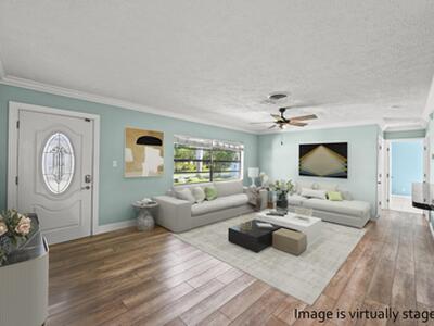 This charming residence combines comfort, convenience, and efficiency in a desirable location. You'll be close to Charlie Leighton Park, less than a mile away, with easy access to the St. Lucie River. The park has a boat launch. Set on a spacious .326-acre lot, this property offers plenty of room for all your toys. The large backyard provides possibilities for entertaining, gardening, or relaxing in your own private space. Inside, you'll find an open-concept layout enhanced with crown molding, a modern kitchen with stainless steel appliances, and comfortable living areas filled with natural light. The home features 3 bedrooms and 2 full baths.