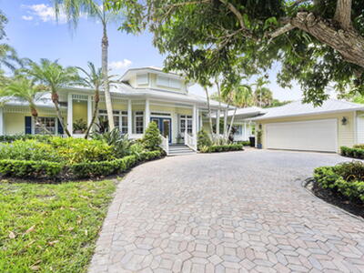 Discover this Key West-style gem in the desirable Sewall's Point community of Sewall's Meadows, ideally situated on a private street surrounded by mature oaks and high elevation. This 4BR/2.5BA home offers 3,175 sqft under air (3,791 total sqft)with soaring ceilings, wraparound porches, & an oversized detached 2-car garage. Enjoy stunning curb appeal with circular paver driveway. Perfect for entertaining, the outdoor living area features a summer kitchen with Viking gas grill, large covered patio, & screened heated pool with spa. The spacious master retreat boasts two walk-in closets & large bath with dual sinks, free-standing soaking tub, & marble-tiled shower. The kitchen includes granite counters, SS appliances, double ovens, & a walk-in pantry.