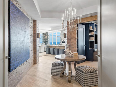 VistaBlue Singer Island - Direct Oceanfront B ResidenceA rare opportunity to own the largest direct oceanfront residence currently available at VistaBlue. This exceptional 4-bedroom + den, 4.5-bathroom home spans 3,645 square feet of meticulously designed interior space, complemented by 486 square feet of outdoor living, all with panoramic, unobstructed views of the Atlantic Ocean.This residence is fully appointed with Miele appliances, sleek Poggenpohl cabinetry, a striking quartz waterfall island, and a Sub-Zero refrigerator and ice maker, perfectly blending form and function. Soaring floor-to-ceiling impact glass brings the ocean into every room, while custom upgrades including Lutron automated shades, custom closets throughout, pecky cypress accent walls in the entry and bar area,