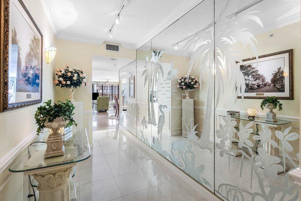 This elegant residence, says ''Palm Beach,'' and greets you with breathtaking views of the sunrise to sunset. Nestled on the 5th floor of the Halcyon's North Building, this spacious two-bedroom, two-bathroom floor plan boasts two glass balconies that offer stunning Southeast Ocean views and panoramic vistas of the Intracoastal. Step inside and you'll be enveloped in a meticulously maintained property. Hurricane-impact doors and glass ensure the safety, while a custom eat-in kitchen, a custom bar with beautiful back-lit etched accent glass, wainscoting walls, custom cabinetry, and attractive stonework add to the home's charm. The Halcyon, where this residence resides, offers a range of amenities to enhance your stay. Enjoy the convenience of 24/7 doormen, a resort-style pool area and beach,