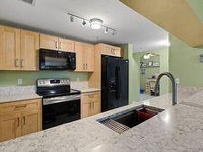 Don't miss this 1st floor unit on the 3rd hole of Gator Trace Golf Course. Move in ready! Three full bedrooms with 2.5 bathrooms. Garage comes with the Unit. This home has a brand new kitchen remodel with quartz countertops throughout. All new appliances with full warranties on all. Safe bolted to floor in master closet. Lanai is fully screened. Great place to sit and enjoy your coffee or cocktails while watching the Golfers. This is a very rare occasion to get a three bedroom 2.5 bath on the 1st floor. Get it while you can. HOME HAS IMPACT GLASS WINDOWS AND DOORS THOUGHOUT. HURRICANE PROOF. Motivated Seller.