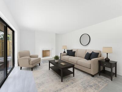 Welcome to your new home! This beautifully updated 2-bedroom, 2-bath townhouse is clean, modern, and full of natural light. As soon as you walk in, you'll notice the spacious open layout and shiny tile floors that run throughout the entire home. The kitchen is fully updated with white cabinets, quartz countertops, a stylish tile backsplash, and stainless steel appliances. It's perfect for cooking, entertaining, or just enjoying a quiet meal at home. Upstairs, both bedrooms are big and bright with large mirrored closets and private balconies. The bathrooms are completely redone with beautiful tile work and pebble stone shower floors that give a fresh, modern feel. Outside, enjoy your own private fenced-in patio--great for relaxing, having a BBQ, or letting pets play.