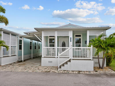 Light, bright, and move-in ready! This 2-bedroom, 2-bathroom home offers 1,105 sq. ft. of stylish living space built in 2017, featuring an open floor plan and beautiful wood-look tile flooring throughout for a cohesive and modern look. The kitchen showcases warm wood tone cabinetry, creating a welcoming and timeless feel.Enjoy your morning coffee or evening breeze on the charming front porch or take advantage of the prime location -- just a 30-second walk to the pool, gym, sauna/steam room, and bar! You can also walk or bike to downtown Jensen Beach to explore its restaurants, shops, and waterfront charm.Sitting on one of the largest lots in the community for this size home, there's potential to add a back patio or deck (with HOA approval). The current owner