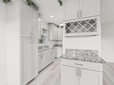 Partially furnished 1Bed 1.5Bath bright and airy end unit. Stunning remodeled kitchen featuring solid Wood 36'' Gray shaker cabinets, built in pantry, 3cm Granite Counters, high hat lighting, under cabinet lighting, glass accent doors, wine rack, white Whirlpool & Samsung appliance package. Recent upgrades include laminate & tile floors, hardwired Hunter ceiling fans, 6'' baseboards, decor electrical switches, lighting, screened front door, new toilets. Impact Sliding Glass door to glass enclosed screen patio with storage. Accordion Hurricane Shutters, Roof 2023, A/C 2022, newer screens & water heater. Great location just a short walk to community club house with Pool, Dance Hall, Library, Gym, Shuffleboard & workshop. Close to shopping, restaurants, and beaches. No pets or Pick-up trucks.
