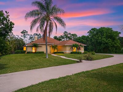 A Rare Acreage Retreat with Room to Breathe and Space to Live the Florida Lifestyle set on a full 2 acres, this 4-bedroom, 3-bath CBS pool home offers the perfect blend of space, comfort, and Florida lifestyle freedom. Inside, a two-sided coral fireplace, vaulted ceilings, and all-tile or wood floors set the tone for stylish country living. The huge kitchen with prep island and stainless appliances and quartz counter tops opens to a bright family room with sliders leading to a screened pool and large covered patio area that is a great entertaining space --your own backyard oasis surrounded by lush tropical landscaping. Enjoy total privacy yet stay minutes from shopping, schools, and Wellington amenities. A fenced dog yard, circular driveway, and 2-car garage make everyday living easy.