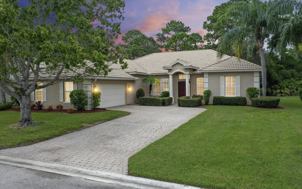 This meticulously maintained 4 bedroom home is perfect for anyone wanting endless space and a wonderful community feel. Backing up to a serene wooded backyard, exterior amenities include a barrel tile roof, gutters, inground sprinkler system, coined stucco edges, and an 8500 watt home generator. Step inside and you'll love the 10' orange peel ceilings, crown molding, and jaw dropping views from your private screened patio. The kitchen boasts gorgeous granite countertops, a matching stainless steel Whirlpool appliance package, and 16'' tile (throughout the main). All 4 bedrooms have been upgraded to luxury vinyl tile. The master bedroom offers a cozy seating area with underneath storage, perfect for book reading, as well as 2 spacious his-and-hers walk in closets. The master bedroom has a