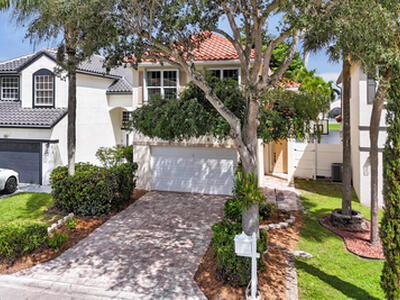 This is the lakefront home you've been waiting for, nestled on a serene private lot with over 2,100 square feet of comfortable living space. This 3-bedroom, 2.5-bath CBS residence includes a 2-car garage and boasts high-value upgrades like hurricane-impact windows, a beautiful new paver driveway, a tile roof installed in 2018, freshly painted interiors and exteriors, and an upgraded kitchen featuring 42-inch cabinets, granite countertops, and stainless steel appliances. Sought-after features include a downstairs den/office, volume ceilings, large windows, tropical landscaping, and generous natural light throughout. Situated on a quiet cul-de-sac, it's just minutes from a private neighborhood park and playground, excellent schools, restaurants, and beaches. Don't delay, come see it today!
