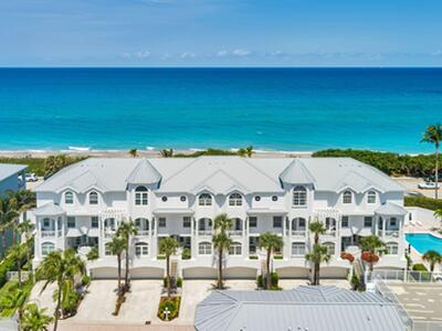 Enjoy panoramic beach and ocean views from this bright and spacious 4-bedroom, 4-bath townhouse in the exclusive, gated community of Jupiter Key. Offering over 3,200 square feet of luxurious living space, this coastal retreat combines elegance, comfort, and convenience just steps from the sand. Inside, you'll find a gourmet kitchen with rich cherry cabinetry, premium appliances, and hardwood floors throughout the main living areas. The expansive master suite features a spa-like ensuite bath and private patio access, perfect for morning coffee with an ocean breeze. Additional highlights include an in-unit elevator, double-car garage, two brand-new Trane AC units, and a fire protection sprinkler system for peace of mind. With four outdoor patios and access to a stunning beachfrontcommuni