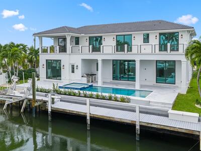 Waterfront New Construction! 5BR, one of which could serve as an Office, 6.1 BA, 2CG CBS home built with the finest and most Luxurious finishes (Floor Plans Attached). 90' of water frontage on a deep wide water canal. New 74' dock and 15k lb lift. Ocean access within minutes with no fixed bridges and a short walk to the beach. Abundant living space including great room, family room, formal dining room and dual master suites. 12'x35' heated pool/spa with large sundeck. A dream gourmet kitchen offers a Thermador 6 burner sealed Gas stainless steel cooktop, Thermador stainless steel 30'' built in double convection ovens, Thermador 48'' fridge/freezer, dual Thermador dishwashers, microwave oven and a spacious pantry. Floor Plans attached in Documents.The kitchen features - See Supplement...