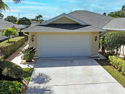 Enjoy golf course views from this bright and airy one-story CBS pool home -- and no high golf fees! This well-built DiVosta villa offers 2 spacious bedrooms, 2 bathrooms, and a 2-car garage. The open kitchen and breakfast bar connect seamlessly to the living area, leading out to a screened pool with relaxing fairway views. Recent updates include a 2022 roof, newer A/C and kitchen appliances, porcelain tile and baseboards, LED lighting, fresh interior paint, new screen, and Insta-hot water. Convenient Jupiter location close to beaches, A rated schools, restaurants, shopping, and golf.