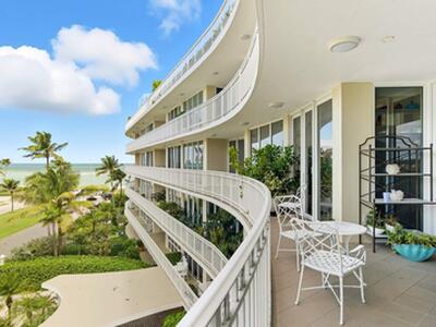 This is a very special location-at the beachfront end of Royal Palm Way with views east to the blue Atlantic and unimpeded views north over the treetops to the Breakers. Very large for an in-town 2 bedroom, F4 has over 2,000 sqft of living space and was renovated with an eye to making the most of the layout's opportunities for water views. You'll wake to ocean sunrises from the primary bedroom and delight your guests with their bedroom's own access to the water view terrace. The apartment has high ceilings, full impact glass and loads of storage space. Very unusually for a 2 bedroom apartment it has 3 AC zone for maximum comfort. Add in a full-time doorman and building manager, garage parking and a back door gate to the beach and you have one pretty idyllic Palm Beach home.