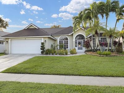 Beautiful 4 bedroom pool home w/ huge bonus room or 5th bedroom in gated Meadowland Cove. Gorgeous wood look tile in living areas, separate dining plus breakfast nook. Kitchen features granite counters tops, pantry, new dishwasher, & wood cabinets. Primary bedroom retreat has walk in closet, soaking tub, walk in shower, plus dual sinks. Other features include cabana bath, newer water heater (large capacity) with heat pump to primary bedroom, & hurricane impact garage doors. Beautiful screened in pool w/privacy fence & lush landscaping. Decorative concrete decking around pool patio & tiled front walkway on a quiet cul de sac lot. The community features a clubhouse w/heated community pool & boat ramp. Perfect location in the heart of Wellington & Equestrian Venues. ''A'' rated school