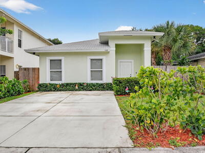 Gorgeous nearly new home (built 2023) featuring three bedrooms and two bathrooms with a bright open layout. The chef's kitchen shines with granite counters and modern finishes. Enjoy the durability and style of wood look tile flooring throughout. Impact resistant windows provide peace of mind and the oversized fully fenced backyard offers plenty of space for outdoor living and room for a pool. No HOA restrictions and just minutes from Downton West Palm Beach and City Place. This property is a true gem! You don't want to miss!