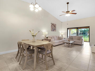 This beautifully updated 2-bedroom, 2-bath villa blends comfort, functionality, and South Florida charm. The open and bright layout creates an inviting flow throughout, perfect for both relaxing and entertaining. The kitchen features newer stainless-steel appliances, while the NEW ROOF (2024), accordion shutters, newer A/C (2021), and newer water heater provide peace of mind and potential insurance savings. An air-conditioned Florida room adds nearly 200 sq. ft. of extra living space, bringing the total to approximately 1,350 sq. ft. under air. The updated primary bathroom (2024), large walk-in closet, and vaulted ceilings enhance both comfort and style. Enjoy your fenced-in front patio, ideal for morning coffee or evening gatherings, with no rear neighbors offering privacy and