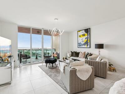 WELCOME TO COASTAL LIVING! This one-of-kind 20th floor retreat situated directly on the widest part of the pristine blue intracoastal, Atlantic Ocean, Singer Island, boating harbor and nighttime city lights. Unique 2 bd. 3 ba. home plus large den/3rd bedroom has endless upgrades, meticulously designed contemporary white kitchen with newer upgraded appliances: paneled Thermador refrigerator and dishwasher, induction cooktop, Wolf microwave, Bosch oven, extra storage, long counter height quartz island, perfect for entertaining, large master suite with 2 walk-in closets, walk out of your 9ft impact floor to ceiling sliders to enjoy morning sunrises, sea life, and boaters from your private balcony, remodeled Inside laundry room for your convenience,