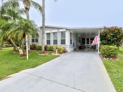 Home for the Holidays! Yes, this could be your new Florida getaway, it's move-in ready on an XL 72x100 lot INCLUDED/NO Lot Rent! Nearly 2,000sf under air including an enclosed patio(176sf) to the Home (1777sf). Large Open Bright kitchen w/ coffee bar, huge master suite w/ double sinks & walk-in shower. Inside laundry (W/D incl), shed/workshop w/sink. Hurricane-ready w/roll-down shutters. Updates: 2022 A/C, 2023 plumbing, fresh 2024 paint. Outside enjoy the lush tropical landscape & lawn with IRRIGATION WELL & Pump with Automatic timer. Conveniently located across from clubhouse. Don't miss it!