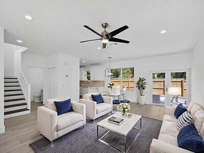 Welcome to this beautifully updated 3-bedroom, 2.5-bath townhome located in the highly sought-after community of Laurel Oaks. Featuring modern finishes and thoughtful upgrades throughout, this home is move-in ready and perfectly situated in the heart of Jupiter. Enjoy a private fenced backyard with artificial turf and a screened patio--ideal for relaxing or entertaining. Inside, there's no carpet--just luxury vinyl flooring and tile throughout. The entire home has been freshly repainted, and nearly every system and feature has been upgraded, including: Brand new refrigerator, dishwasher, and microwave, Washer and dryer (2025), Stove/range, AC and water heater, Roof (2021), New LED lighting, fan, blinds, and a new vanity in the downstairs bathroom. The kitchen has quartz counters and
