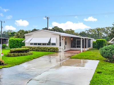 Drift back in time to the days of Old Florida on a quiet Cul-de-Sac with soft Ocean Breezes from the Pet-Friendly Jupiter Island Beach, less than 10 minutes away! This cozy cottage has Just been Upgraded with $40K in Foundational Reinforcements and New Luxury Laminate Flooring. The Cathedral Ceilings throughout are adorned with 5 Ceiling Fans, providing a Light & Airy ambience conducive to Entertaining and Leisure in the Living Room, Family Room, Breakfast Nook and Pass-Through Bar Area. Stately Clusia Hedges surround much of the Property You Own for the Ultimate in Privacy & Beautiful Greenspace Views from Indoors. Whether You are searching for a Winter Getaway or Year-Round Residence, - this Unique Gem, tucked in-between Jupiter & Port St. Lucie for Spring Training Enthusiasts.