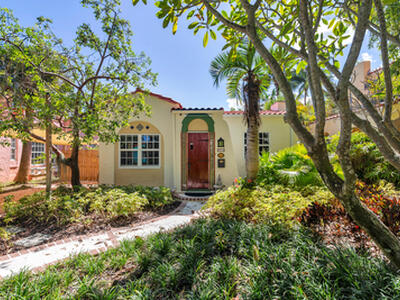 Step into a piece of history with this beautifully maintained 1920s home in West Palm Beach's desirable Flamingo Park Historic District. This residence perfectly blends classic charm, highlighted by Dade Pine hardwood floors and original details, with modern efficiency. The functional layout offers flexible spaces, including a formal dining room, charming breakfast room, and a versatile area that can serve as a third bedroom or a dedicated wellness space. This exceptional property also offers a one bedroom, one bath cottage, perfect for generating rental income, hosting guests, or creating a private home office/studio. You'll enjoy significant modern upgrades like electric solar panels and reverse osmosis water filtration system, along with the convenience of a carport