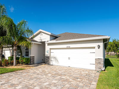 Built in 2020, this gated community home offers 3 beds, 2 baths, plus a flex room with a door that functions as a 4th bedroom and fits a king bed. The open concept split floor plan features wood-look tile, and a spacious owner's suite with lake and golf course views. Enjoy a covered lanai with an electric phantom screen, plus hurricane impact windows and doors. The 2-car garage includes epoxy flooring and a pulley storage system. Smart-home features, a custom built in electric fireplace, upgraded washer and dryer, and Low HOA with a community pool, minutes to Hobe Sound Beach, and not in a flood zone!