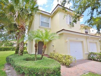 Fully furnished turnkey townhome in the heart of Wellington in sought after Georgian Courts. Live the Florida lifestyle in a wonderful Wellington community or purchase as an investment and rent it seasonally or annually! Large 2 BR, 2.5 BA,. plus a loft (or third bedroom) corner unit on the canal...located in the back of the subdivision with single car garage and long paver driveway which would accommodate 3 vehicles. Additional parking available. Low HOA which includes lawn care, maintenance of the exterior and community pool. Step inside to an open living/room dining and fully stocked kitchen with upgraded wood kitchen cabinetry, pantry with pullouts, granite counters. 1/2 bath downstairs. Glass sliding door leads to the backyard with paver patio which backs to a canal...