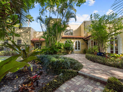 Discover one of the most storied residences in downtown West Palm Beach, Grandview Gardens. Originally built in 1925, this Mediterranean Revival estate embodies the architectural grace and tropical allure that define South Florida's golden era, offering a rare blend of historic pedigree, income potential, and modern livability. Set on over a half an acre within the Grandview Heights Historic District, the property spans more than 7,700 square feet across two distinct structures and the inclusion of 734 Palm Street further enhances this potential, offering additional lot depth and street access for future improvements or guest accommodations.