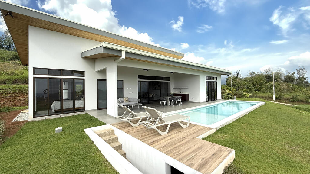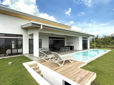 Away from the hustle bustle, on a lush, tropical mountainside overlooking the Pacific Ocean, this modern, new, 3-bedroom, 2 bath home is located in the beautiful village of Chontales. The Southern Pacific zone is the epicurean capital of Costa Rica, with great restaurants nearby, & is an area that is growing & in demand.The fine interior warm woods are local, the ceilings dramatic, & everything is custom made. Bright, light & airy, with ample windows & glass doors to capture the mountain, valley & ocean views. We call this a trifecta!A home for entertaining, the spacious kitchen & center island flow to the covered porch/pool area. The 2 fans & an outdoor kitchen will be a delight!The must-see Master Suite is gorgeous!Partially furnished & turnkey! A CR Dream Come True!
