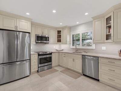 Welcome to your new home. Enjoy Florida living in this completely renovated 2BR/2BA 1-car garage villa. This corner villa features: Renovated kitchen in designer French white cabinets, New SS appliances, pantry, granite counters. subway tile backsplash, Trane AC 2018, Recessed lighting in kitchen and living room, 24x24 Neutral tile on the diagonal throughout, impact sliding glass door in Florida room, knock down textured ceilings (no Popcorn), garage has tile flooring, full-size washer and dryer with laundry tub, plantation shutters on all windows, recently resurfaced driveway, updated crown molding and 7'' baseboards, custom mirror in dining area, both bathrooms have been completely updated. Roof installed in 2007.