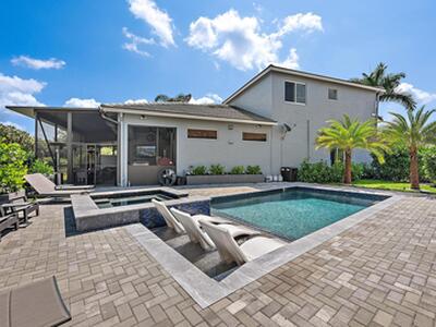 IMMEDIATE PREMIER GOLF MEMBERSHIP NEGOTIABLE WITH THIS PROPERTY. Completly reimagined with custom and designer finishes throughout, and boasting a new roof, Impact Glass, and whole-house generator, this spacious and stunningly remodeled lakefront 4BR/5BA+Loft residence in the Club at Ibis is like no other property. Every inch of this two-story home has been thoughtfully renewed and perfected, creating a modern sanctuary of sophistication, comfort, and style. A brand-new custom-designed heated pool and spa serve as the centerpiece of the outdoor living space, surrounded by a beautifully pavered deck ideal for both relaxation and entertaining. Inside, the layout has been redesigned to enhance light, flow, and functionality.