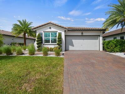 This beautifully appointed 3-bedroom, 2-bathroom residence with a 2-car garage offers the perfect opportunity for year-round living just seven minutes from the equestrian heart of Wellington. Built in 2020, the home features an open and inviting floor plan with abundant natural light, impact-rated windows and doors, electronic window treatments, custom wall paneling, GE Profile appliances, a large kitchen island with designer hood, and a stylish backsplash that elevates the space. Smart-home features and cost-saving solar panels enhance day-to-day living. The private turf backyard, covered lanai, outdoor kitchen, and resort-style saltwater heated pool with jacuzzi provide an effortless indoor-outdoor lifestyle perfect for relaxing or entertaining year-round.