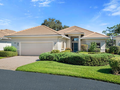 Enjoy breathtaking views of the 1st hole on the Gold Course from this move-in ready 3-bedroom, 2.5-bathroom home in the sought-after Cypress Point. The thoughtfully designed floorplan features tall ceilings and a Florida room that fills the home with natural light, perfect for relaxing and watching the golfers go by. The updated white kitchen boasts stainless steel appliances, ideal for cooking and entertaining. The spacious primary bedroom offers serene golf course views and a large en-suite bathroom with dual sinks, a tub, and a separate shower.Additional highlights include a 2-car garage, a 2020 cement tile roof and accordion shutters. This property is being sold turnkey! Just a short walk from your door, residents enjoy access to the Cypress Point sub-association pool
