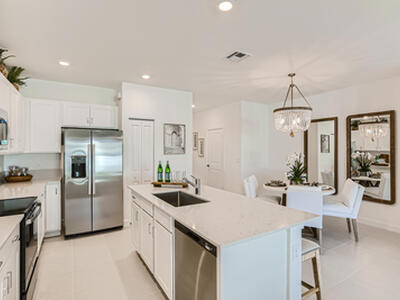 This two-story townhome showcases a contemporary open design among the first-floor kitchen, dining room and living room to promote seamless transitions between spaces. Through sliding glass doors is a terrace for outdoor relaxation. Upstairs caters to all three bedrooms, including the spacious owner's suite complemented by an adjoining bathroom and oversized walk-in closet. Photos are for illustrative purposes only.