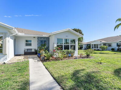 Discover this beautifully renovated 2-bedroom, 2-bathroom villa, where modern elegance meets comfort. Furnished. Featuring impact windows for safety and energy efficiency this home boasts a bright open-concept layout with high-gloss porcelain tile floors throughout. The stylish kitchen is a chef's dream, showcasing granite countertops, stainless steel appliances, shaker cabinets, and a chic backsplash. The spacious primary suite includes ample closet space and a well appointed en-suite bath with a sleek vanity and a walk-in shower, while the second bedroom offers generous storage and easy access to a tastefully updated guest bath. Natural light floods the enclosed sunroom, perfect as a reading nook or home office, complete with plantation shutters and tranquil views of the lush landscape.