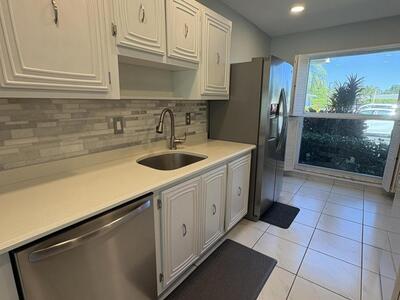 WELCOME TO THIS LIGHT FILLED 1 LEVEL VILLA IN PALM GREENS ADULT COMMUNITY. 2 BEDROOM, SPLIT FLOOR PLAN, 1.5 BATHS. UPDATED KITCHEN, STAINLESS APPLIANCES, QUARTZ COUNTERS. OPEN LIVING ROOM/DINING WITH EXTENDED AREA FOR ENTERTAINING. LOOKS ONTO PROFESSIONALLY LANDSCAPED, LIGHTED PATIO IN PRIVATE BACKYARD. ALL TILE FLOORS, PORCELINE IN BEDROOMS. PRIMARY BEDROOM WITH NEW CUSTOM CABINET, WALK IN CLOSET. GUEST BEDROOM WITH PRIVATE BATHROOM. PLANTATION SHUTTERS ON ALL WINDOWS. SOME IMPACT WINDOWS. FRONT ENTRY IMPACT DOOR. ALL NEWLY PAINTED, METICULOUS, MOVE IN READY. ASSIGNED PARKING IN FRONT PLUS GUEST SPACES. NEW UPSCALE CLUBHOUSE AND POOL AREA SCHEDULED FOR JAN 2026. ENJOY ACTIVE COMMUNITY, TENNIS, PICKLEBALL AND MORE. POPULAR DELRAY LOCATION CLOSE TO HIGHWAYS,BEACH, DOWNTOWN, SHOPPING