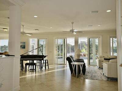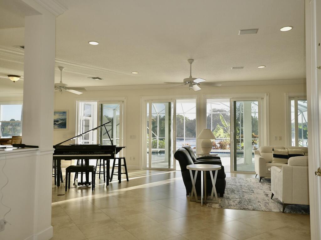 Welcome to Imagination Plantation, a 5-bedroom, 4-bath waterfront estate on 4+ acres in Palm City -- including a 3+ acre vacant buildable lot fronting the main residence. Built in 2006 and thoughtfully updated with a 2022 roof, full impact glass, and fresh exterior paint, the home offers nearly 4,000 sqft of open living space, plus an elevator. The interior flows seamlessly to a screened-in pool and covered patio, while a circular drive and 3-car garage enhance convenience.