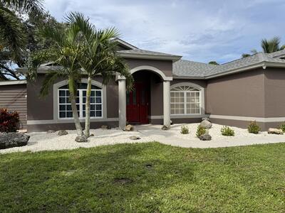 This 3bedroom 2 bath in Vero Lake Estates has no HOA, 2 car attached garage, massive detached 1925sq ft insulated metal building (55'Lx35'Wx25'H ) with two 14' x 16'H Doors, large backyard, covered and screened back porch, over 10 fruit trees on the property, and extra parking. Custom oversized kitchen, granite countertops, breakfast nook, brand new whole home dehumidifier, fresh paint, dual shower in master bath, and newer roof installed Dec 2020. Privacy trees around the property and at the end of a dead end road. Keep all your toys in one place with the detached building and enjoy the freedom of no HOA! Just a short drive to the beach and Sebastian inlet.Room sizes are approximate
