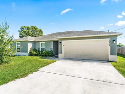 Spacious 4 bedroom 2 bath home in the highly sought after area of Port St Lucie! This 2020 build features sturdy CBS construction and a beautiful open floor plan. Low maintenance solid surface counter tops throughout kitchen, stainless steel appliances and a spacious yard perfect for hosting the next holiday get together! Prime location, with shopping and dining close by and a short drive to US1, about 15 minutes from i95. Let's make this house your new home!