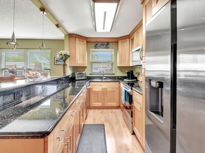 UPDATED and TURNKEY, right next to heated pool and clubhouse, 1 large bedroom with two walk-in closets, 1.5 bathrooms, plus Florida Room/Den. COMPLETE impact windows (back and front) open kitchen concept with stainless steel appliances, granite countertop,.comfortable wood grain laminate floor with tile bathrooms & Florida room. Relax and enjoy your private patio and walk among resort-style amenities, including a second heated pool, Tiki Bar, bocce, shuffleboard, putting green, and more. Conveniently located near beaches, shopping, dining, scenic walking trails & parks, and two airports. IDEAL LOCATION for those seeking a great community with coastal living near the beach. Roof 2023, Paint 2024.Road 2022.No special assessments. LOW HOA Only $349