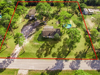 Spacious 3-bedroom, 2-bath single-family home with a detached 32' x 24' garage, easily converted to a mother-in-Law suite as it has its own electric meter and water. No HOA--bring your work trucks, boats, horses, or chickens! This property offers the freedom to personalize and enjoy. Located just five minutes from Westlake, offering shopping, dining, and an emergency room. Only 10 minutes to Wellington and Northlake, 20 minutes to PBI Airport. A-rated schools nearby. Remodeled with new roofs, A/C, and tile (2014), plus a new water system (2024). Split floor plan, master with walk-in closet. No pond. Lot sits on 1.29 acres. Take advantage of this lot and build an additional unit right on the parcel for income production.