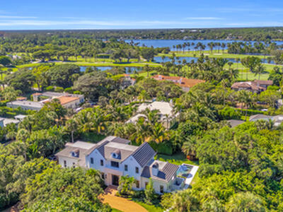 Located near the Jupiter Island Club and Golf Course, this 2023 British West Indies-inspired residence combines timeless architecture with modern coastal luxury. The main level features a gourmet kitchen, spacious living room with gas fireplace, dining area, private office, and a guest bedroom with ensuite bath. Upstairs, the owner's suite offers two custom walk-in closets, balcony access, dual vanities, a walk-in glass shower, and a coffee bar. Two additional bedrooms share a luxurious connecting bath and open to an expansive balcony overlooking the pool. Perfect for entertaining, the outdoor spaces include a covered lanai with summer kitchen and gas fireplace, poolside dining patio outdoor shower, and a heated pool and spa with sun shelf.