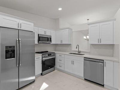 Welcome to your new oasis in the highly sought-after community of Whisper Walk. This stunning residence has been meticulously renovated from top to bottom, offering timeless style with modern comfort. Step into your chef's kitchen, beautifully appointed with LG stainless-steel appliances, quartz countertops, and designer-grade soft-close cabinetry. Enjoy casual mornings in the charming breakfast nook. The oversized living and dining area is perfect for relaxation or entertaining, showcasing elegantly crafted marble flooring throughout. Retreat to the bedrooms where you'll find luxury flooring, thoughtfully designed layouts, and spa-inspired modern bathrooms. Unwind with a cup of coffee or a glass of wine on the air-conditioned patio overlooking lush, green garden views, your personal