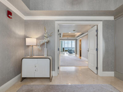 Experience refined coastal living at Ocean's Edge, one of Singer Island's most exclusive addresses. This fully renovated southeast corner residence by Jackie Armour Design (JMA Interiors) captures panoramic ocean and Intracoastal views through floor-to-ceiling glass and elevated ceilings. Offered furnished, the home features an elegant gallery entry, spacious living and lounge areas, and three bedroom suites with bespoke finishes. Custom cabinetry, designer fixtures, and curated textures define its modern luxury. Residents enjoy private elevator entry, resort-style amenities including pool, fitness center, theater, and club lounge--all within a serene, pet-friendly enclave.