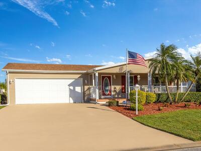 Welcome Home to this lakefront property in the Savanna Club 55+ community. This spacious 1,768 sq. ft. gem offers 3 BR's, 2 BA's, and a 2-car gar.. The island kitchen is perfect for entertaining, with modern finishes and ample counter space. Tiled and vinyl floors make it both stylish and easy to maintain. Enjoy the outdoors on the 14 x 20 lanai with views of the lake. The home has recent updates including a 2018 roof, 2020 A/C, updated retaining wall, vapor barrier, straps, and insulation under the home for added peace of mind. The included golf cart makes it easy to explore the community and nearby amenities and the furnishings are negotiable. Don't miss the opportunity to experience this incredible lakefront home in the Savanna Club! Land Lease Property