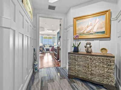 Experience luxury living at its finest in this stunning PENTHOUSE residence. With breathtaking water views from multiple rooms, this home offers an expansive wraparound terrace, where three rooms open directly to panoramic vistas of the Intracoastal Waterway. A private guest balcony also captures beautiful ocean views, adding to the allure of this exceptional property. Inside, enjoy the builder's showcased unit-upgraded mahogany wood floors, 10' ceilings, a gourmet kitchen, and elegantly appointed baths with custom tiles. Fine millwork throughout The spacious 3 bed/3 bath layout provides both comfort and sophistication. The elevator opens directly into your foyer, setting an elegant tone upon arrival and perfectly framing the natural beauty of Jupiter's waterways.